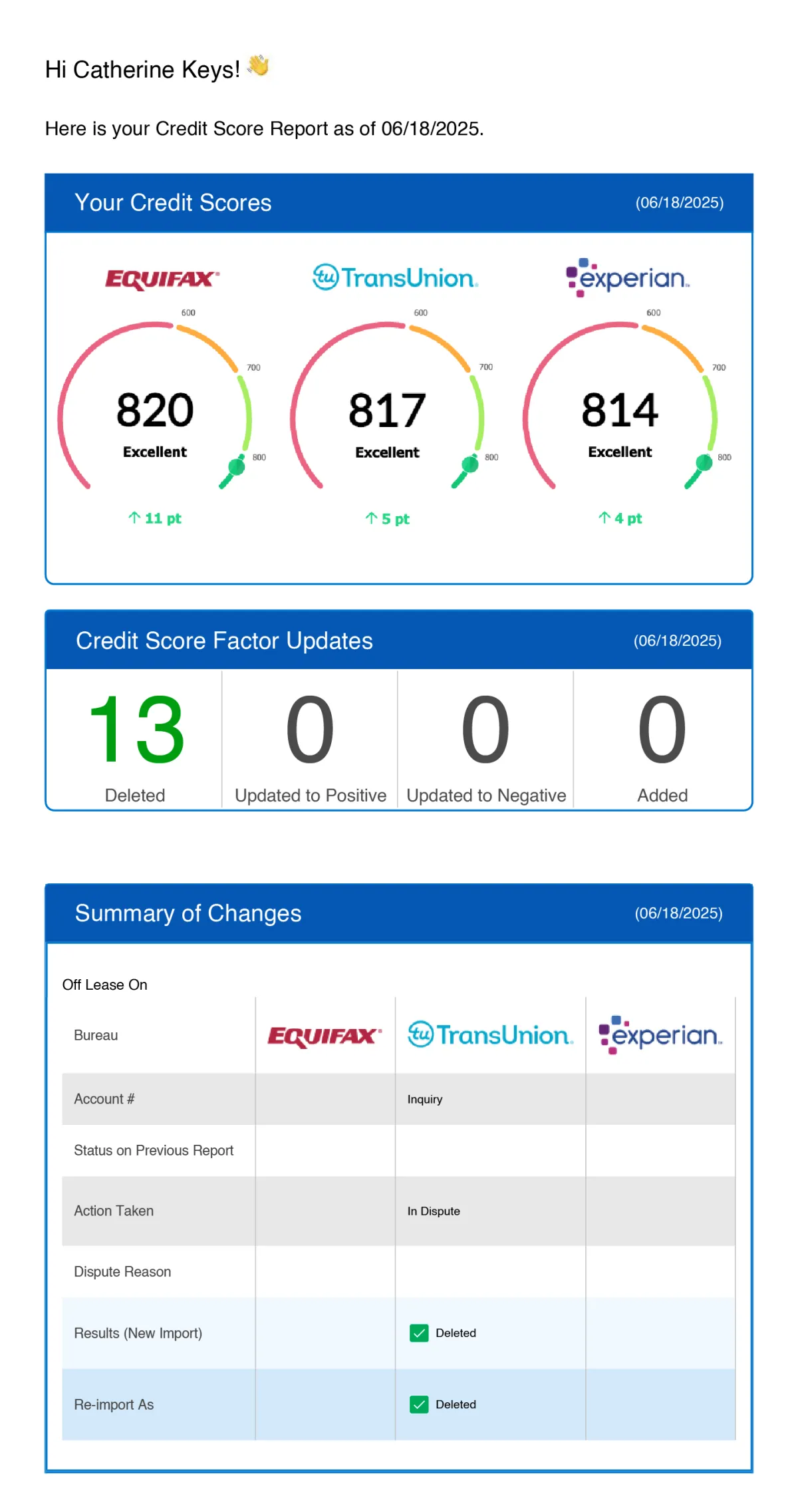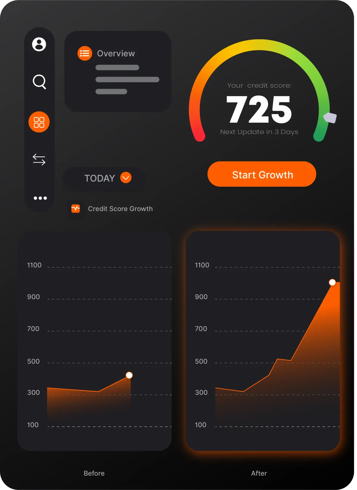 Track every step of your credit repair journey with an intuitive live dashboard showing up-to-date dispute statuses and score improvements.
